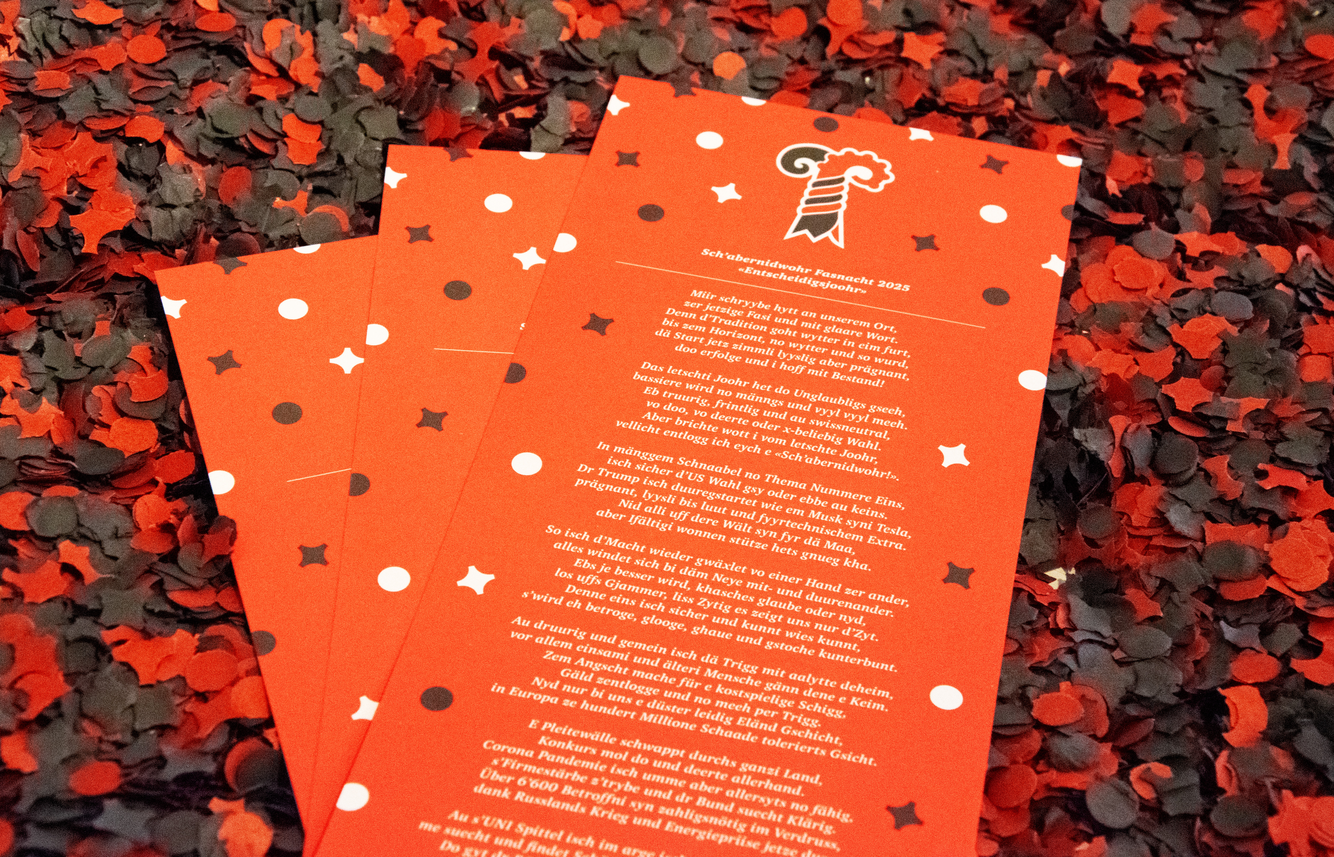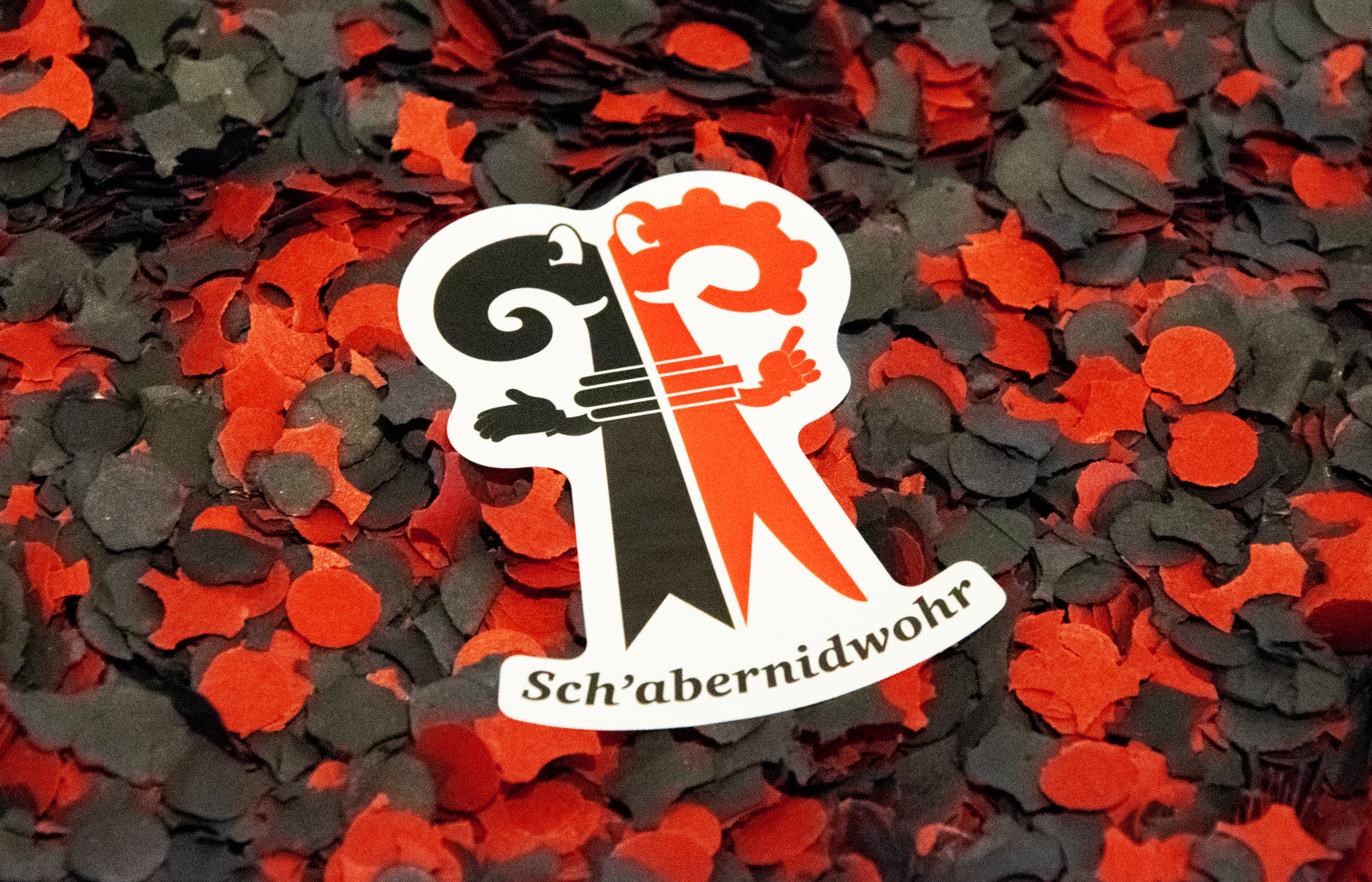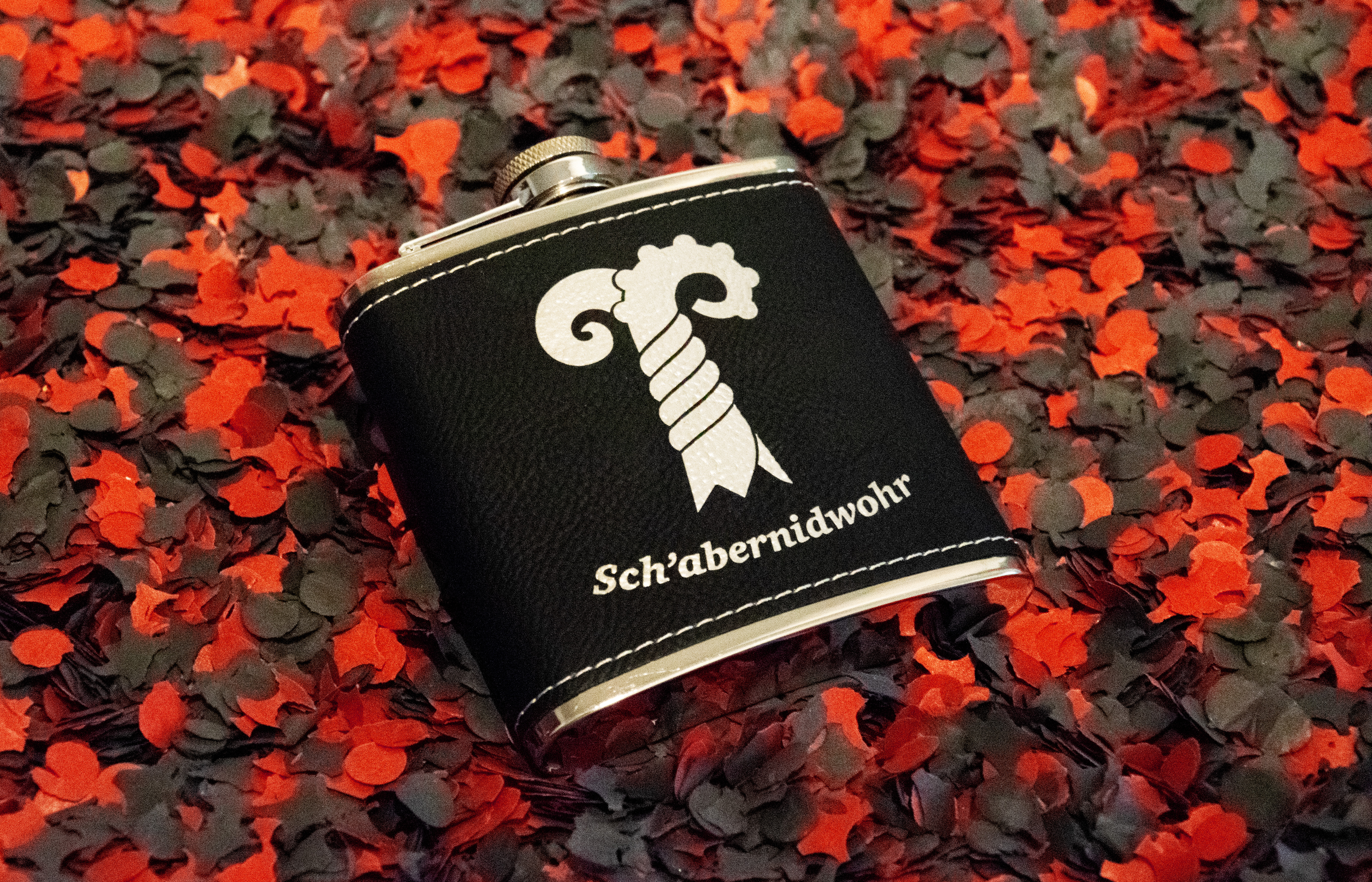 Metall Pins, Sticker, Schalhalter, Fasnachtszettel und viele weitere Merch-Artikel für den Fasnächtler/die Fasnachtsfigur «Sch’abernidwohr».