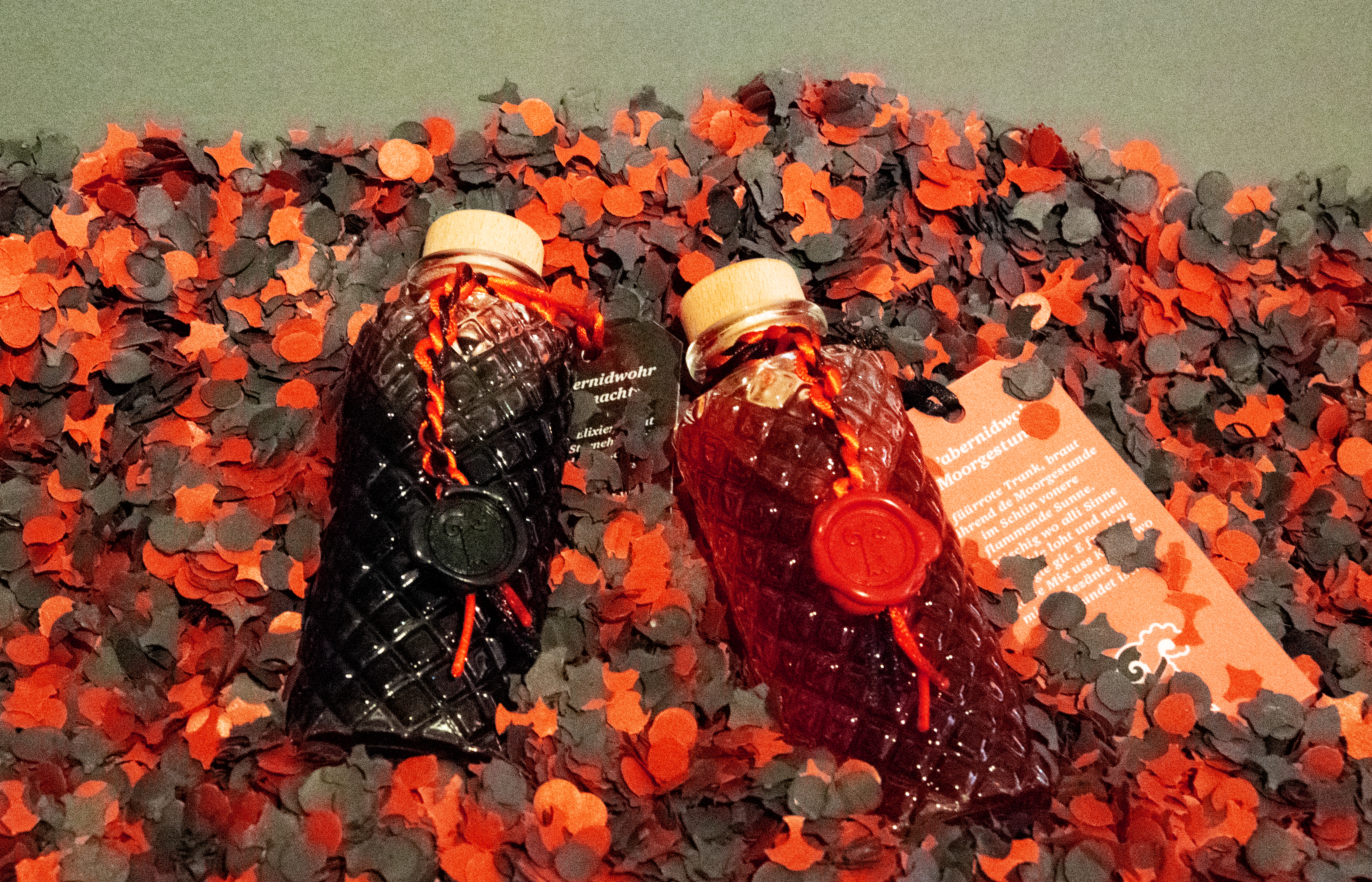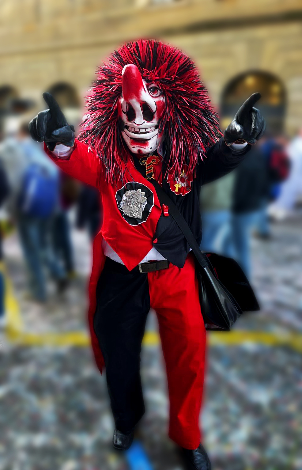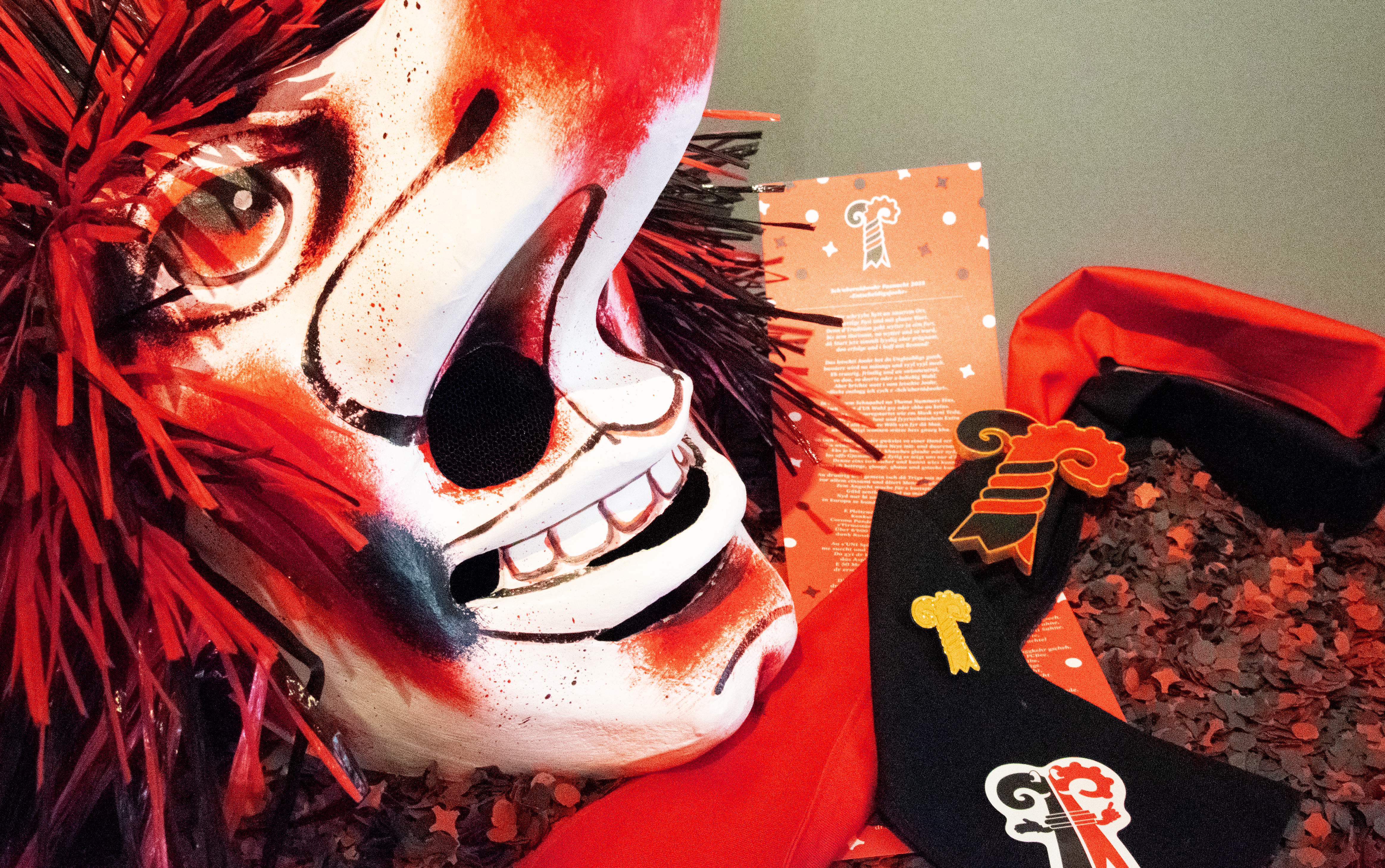 Metal pins, stickers, a scarfholder, Fasnacht-flyer and much more merchandise for a “Fasnächtler”/the “Fasnacht”-character “Sch’abernidwohr”.